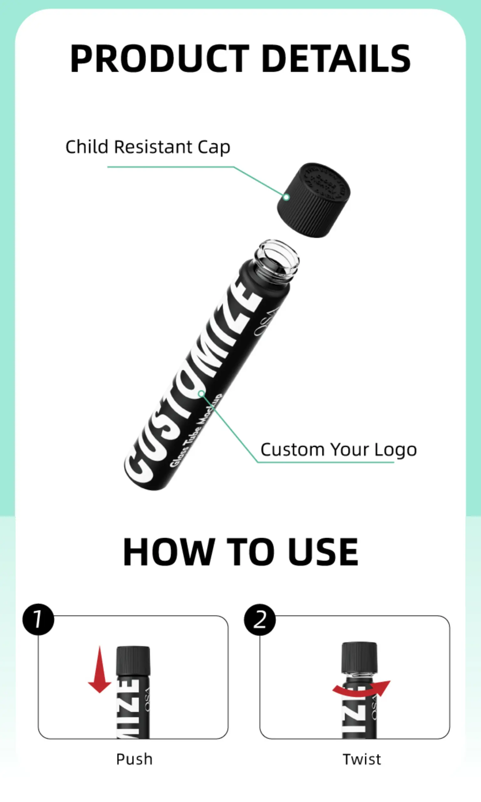 Pre-roll tubes must incorporate child-resistant mechanisms suitable for cylindrical packaging formats while maintaining single-handed operation for adult consumers. Standard push-and-turn caps must function reliably despite repeated use and various environmental conditions.